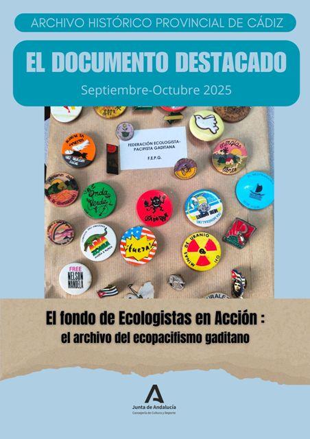 Gracias a la donación por parte de Ecologistas en Acción Cádiz de su archivo histórico a la Junta de Andalucía y depositado en nuestro Archivo, se podrá investigar sobre los grandes temas que en estos casi 60 años los colectivos han tenido protagonismo en tantos temas claves a nivel de ecologismo como de pacifismo (movimiento objeción de conciencia, marchas anti-otan, planes ordenación natural, desastres ecológicos, defensa medio ambiente…).