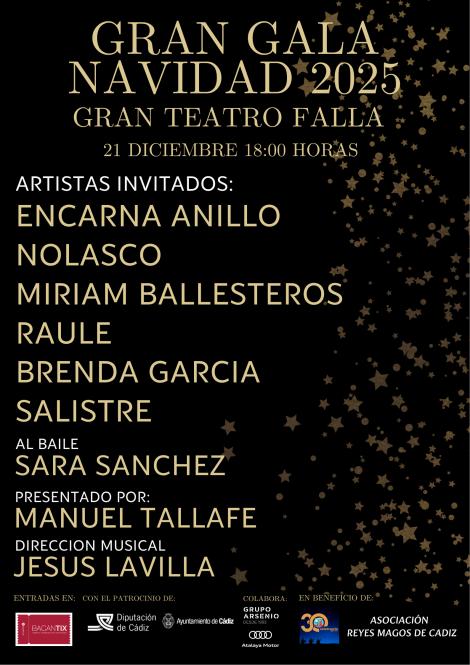 El próximo 21 de diciembre a las 18:00 horas, el Gran Teatro Falla acogerá la Gran Gala de Navidad 2025, una cita única donde la música, el arte y la ilusión se unen por una buena causa.