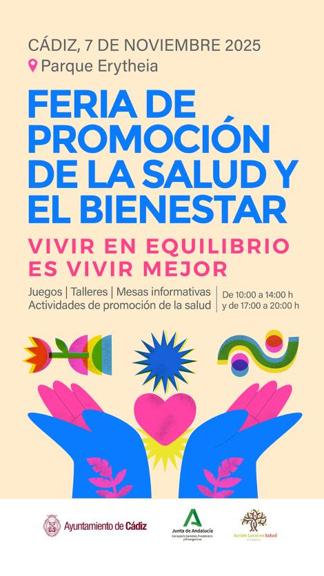 El Ayuntamiento de Cádiz y el Distrito Sanitario Bahía de Cádiz-La Janda de la Junta de Andalucía han organizado para el viernes 7 de noviembre la II Feria de Promoción de la Salud y el Bienestar, una jornada abierta a toda la ciudadanía que se desarrollará en el Parque Erytheia bajo el lema ‘Vivir en equilibrio es vivir mejor’.