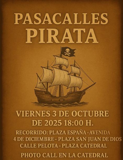 Este viernes 3 de octubre a las 18h, las calles de Cádiz se transforman en un escenario de aventuras con el Pasacalles Pirata: actores caracterizados, duelos teatrales, humor, coreografías y hasta una carroza-barco