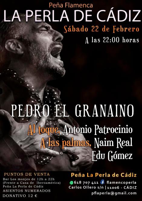 PEDRO EL GRANAINO. Le acompañará la sonanta de ANTONIO PATROCINIO y las palmas de NAIM REAL Y EDU GÓMEZ.
