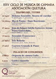 El XXVI Ciclo de Cámara, que este año se extiende a ocho conciertos entre el 24 de enero y el 6 de junio, se celebrará en dos sedes, el Teatro del Títere los seis primeros y en el Palacio de Congresos los dos últimos.